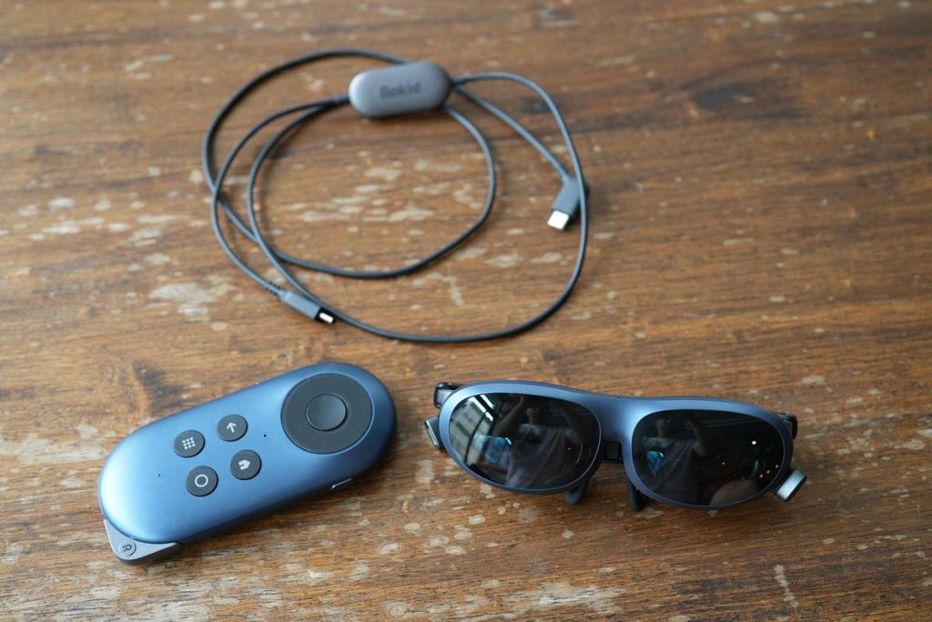 The AR glasses, at least the consumer grade kinds, are really just wearable displays in the shape of sunglasses. The Rokid Max has a pair of micro-OLED screens that pump out a single visual equivalent to about a 215-inch screen positioned 10 feet from the user. The screen feels large enough to cover the entire field of vision, but not so overwhelming that you have move your head around to look.