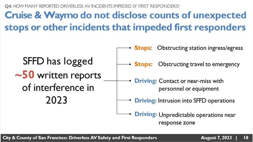 Waymo and Cruise did take deliberate advantage of certain procedural items here. While it’s true that the CPUC only regulates passenger services, it’s also clear the public interest here goes beyond that, particular with emergency services. The commission should have understood that the questions needed stricter definitions to include events which seriously delayed traffic or emergency workers, not just events that needed a remote rescue. The companies indicated they were given only short notice to provide this data and did what they could. At the same time, the CPUC, which does indeed only regulate these vehicles as taxi services, is not the agency that should be considering these questions, and are only doing so under pressure from city officials who arguably overstepped by taking this route, as these matters are the province of the California DMV and NHTSA.