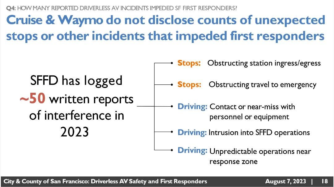 With both Cruise and Waymo insisting that their remote operators are always connected in emergency situations, and that they can talk to people near the car, it is unclear what has caused the incidents where emergency workers seem to try to talk to a car which does not respond. More information on this should be disclosed.