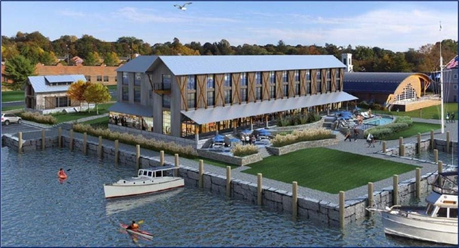 Delamar Mystic—set to open in late 2024—is set on the Mystic Seaport Museum campus, where Mallory’s familial ties run deep. The boutique hotel will have 31 rooms and suites with captivating views of the Mystic River and Mystic Seaport. It will also have a 3,000-square-foot waterfront ballroom, a guest-only swimming pool, a restaurant with indoor and outdoor seating and plenty of dock-and-dine capabilities.